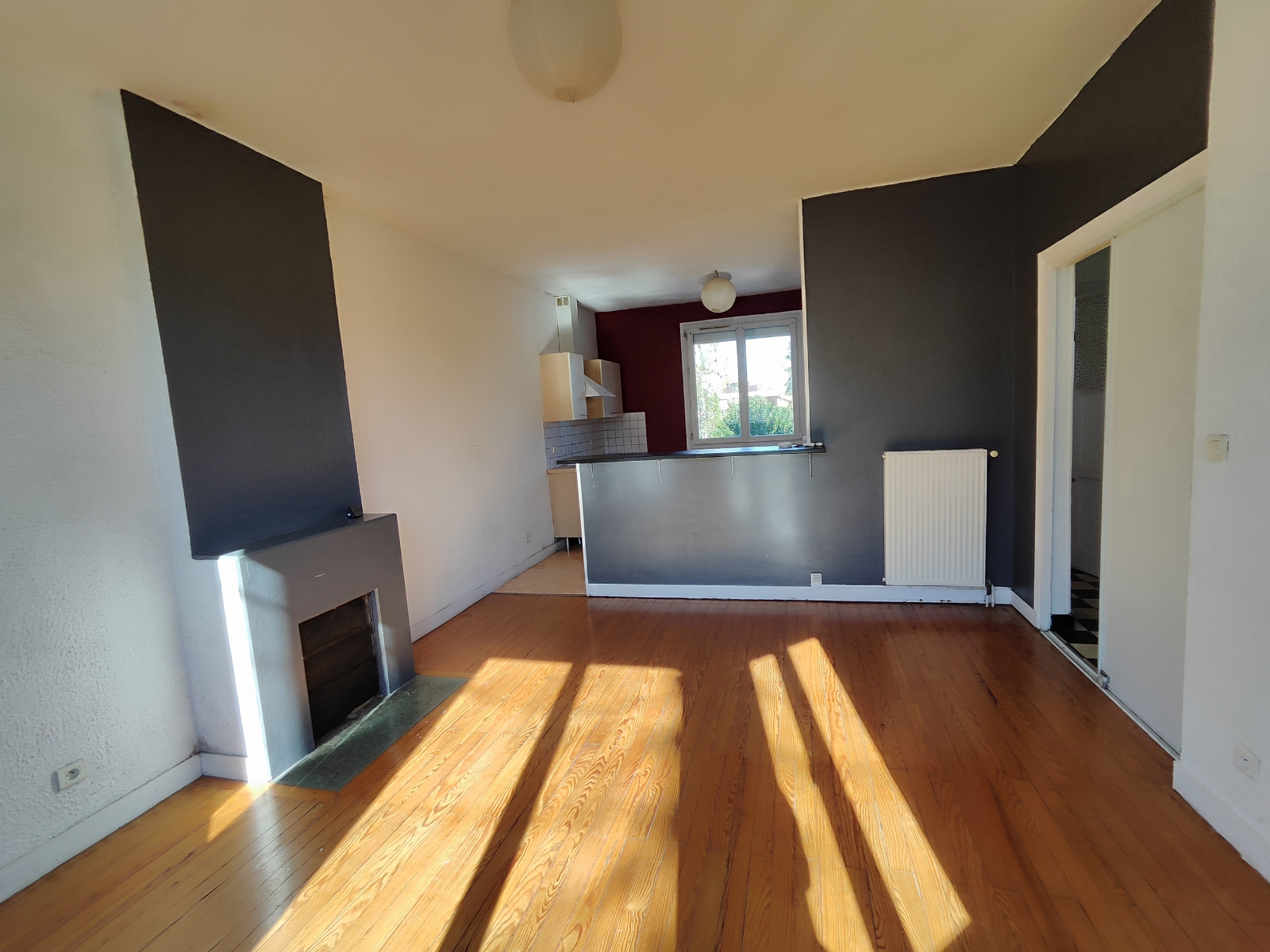 Elle se compose d'une belle entrée, cuisine ouverte sur séjour lumineux, 2 chambres, salle d'eau/wc.
