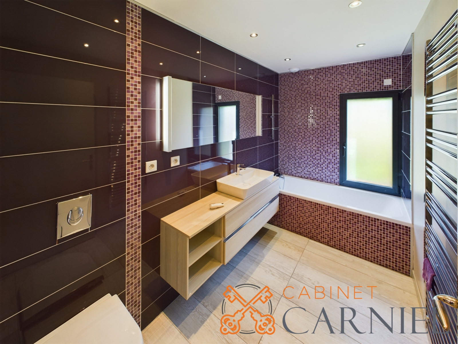 Cette contemporaine à l'architecture atypique de 180m² se compose d'une entrée avec placard donnant sur une pièce de vie baignée de lumière, d'une cuisine équipée séparée (possibilité d'ouvrir sur le séjour) avec salle à manger, cellier et bureau. L'espace nuit est desservi par un dégagement équipé de placards muraux design, de penderies et d'un wc indépendant; il est composé de deux belles chambres, d'une salle de bains avec wc et d'une suite parentale (chambre, salle d'eau et placard).