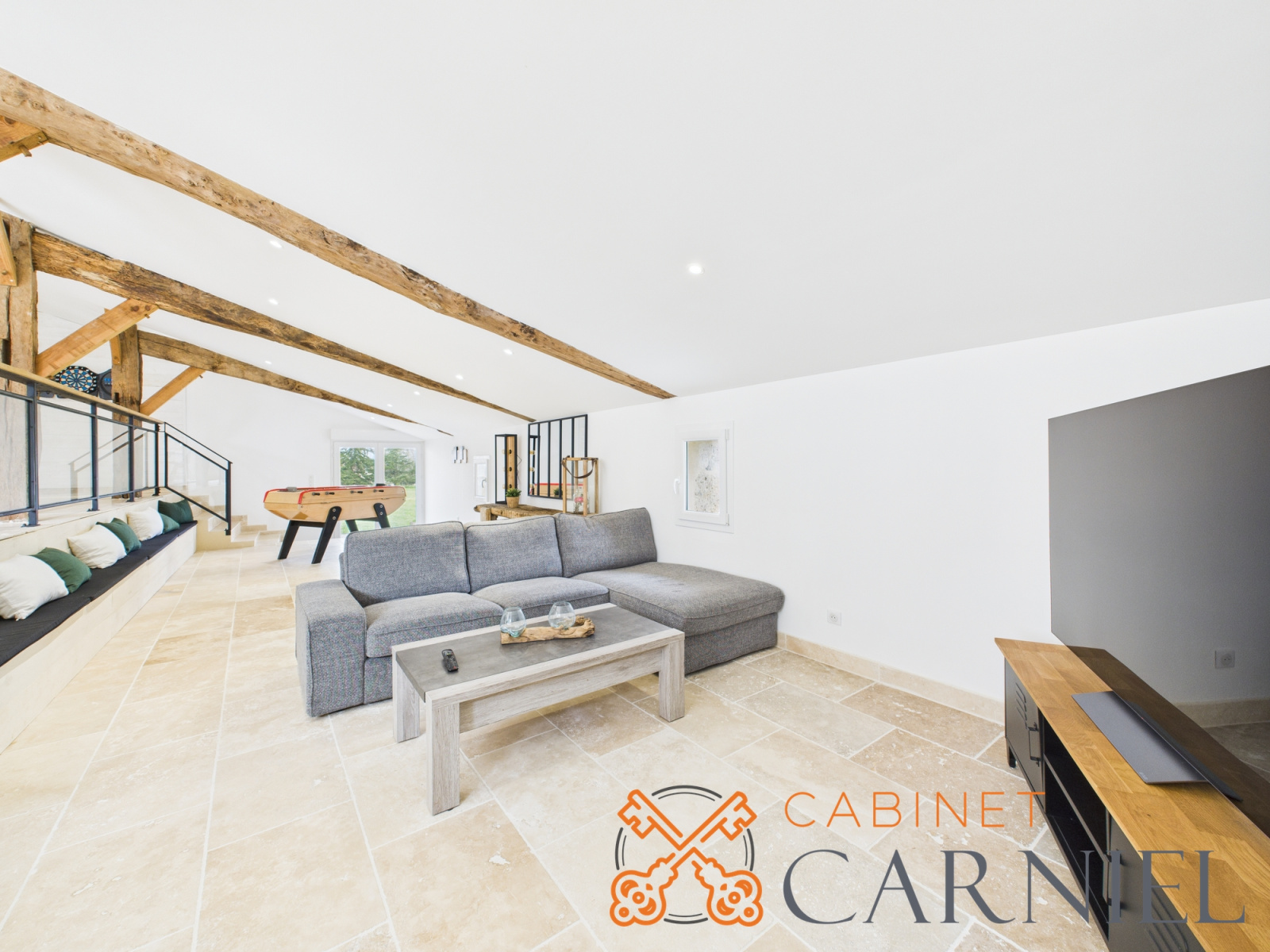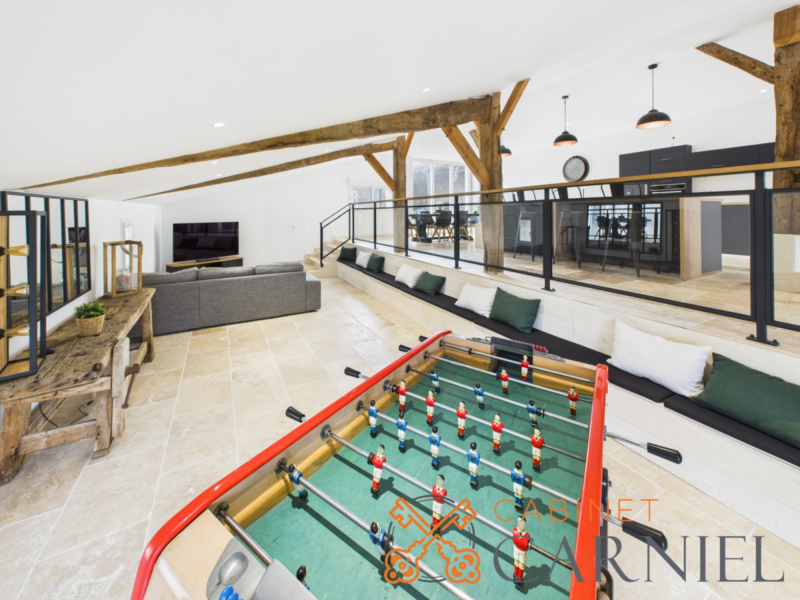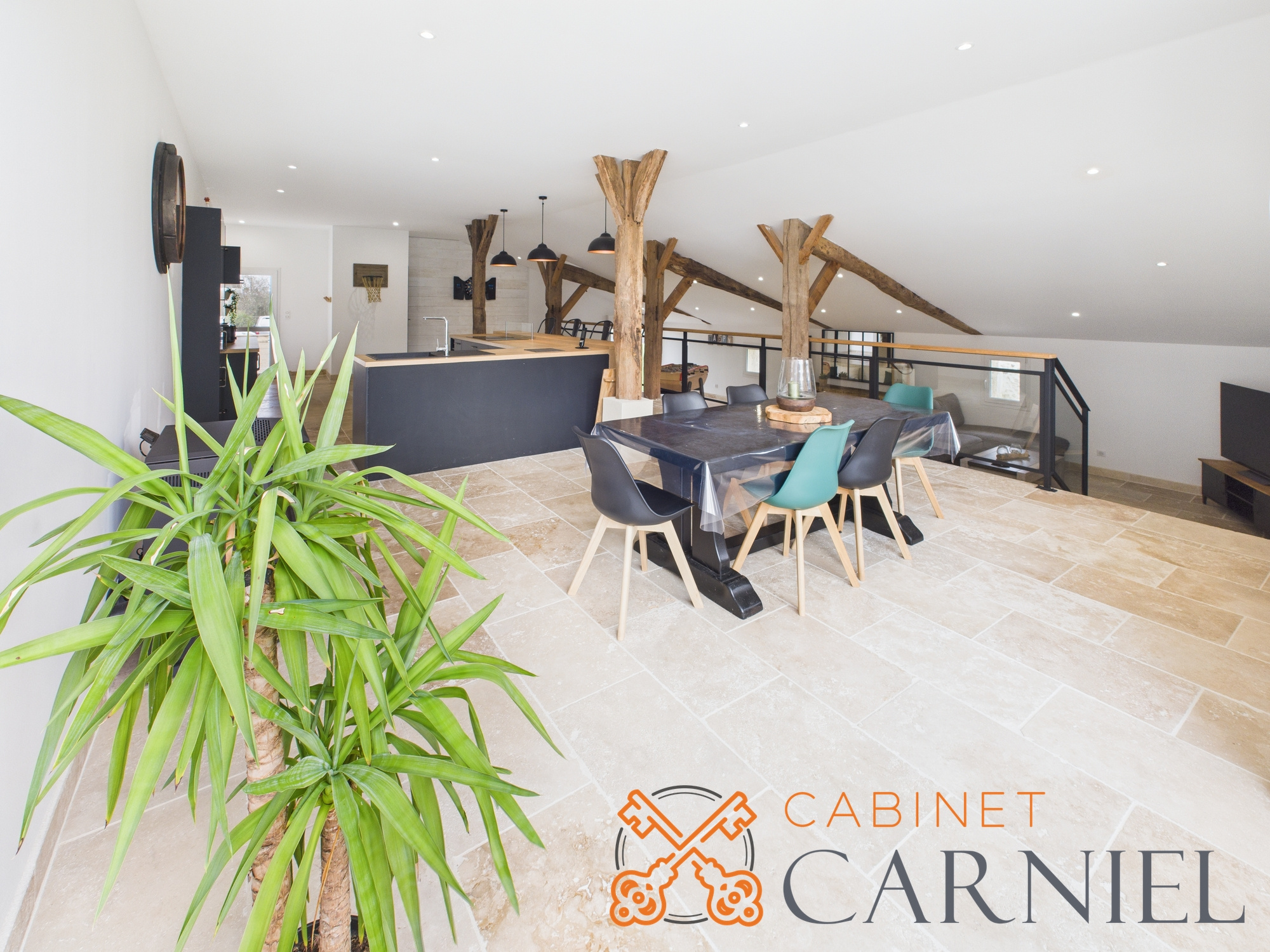 La seconde partie aménagée offre uns vaste pièce de vie de près de 110m² ! Une cuisine, une salle à manger, un coin TV et même un WC. C'est l'endroit idéal pour recevoir famille et amis !